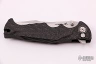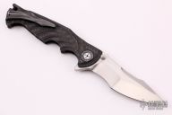 This Tighe Breaker Integral Flipper by Brian Tighe features a hand rub satin finished blade with dual thumb studs, notched thumbrest and a flipper. The handle has a milled, integral carbon fiber frame with deep finger grooves, Zirconium pivot collars and tip up clip, lanyard hole at the butt. Smooth flipper action. Nice blade seating and lockup. Excellent condition. Comes with a nylon zippered case.