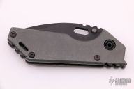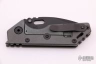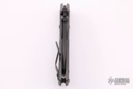 This 3/4 AR by Strider Knives features a black PVD coated blade with notched thumbrest and thumbhole. The handle has a tumbled and anodized titanium frame with a stonewashed titanium tip up clip. Nice detent, lockup and blade seating. Excellent condition.