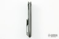 This Neon Zero by Shirogorov has a stonewashed blade with notched thumbrest and flipper. The handle has a bead blasted titanium frame with Mayonized holes, matching tip up clip with hidden screws and backspacer. Comes with original box and papers. Excellent condition. MRBS.