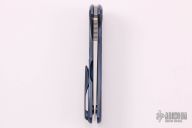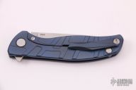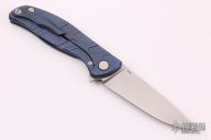 This Model 95 framelock flipper from Shirogorov has a flat ground and tumbled blade with a milled and anodized titanium frame with matching tip up clip. Excellent lockup, crisp detent, and perfect seating. Excellent condition. Comes with original box and papers.