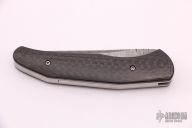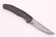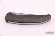 This Small Persian Scale Release Auto by Chuck Gedraitis features a Vegas Forge Ripple Pattern SS Damascus blade. The handle has carbon fiber scales with orange peel finished titanium liners, stainless steel and titanium backspacers. Nice action, lockup and blade seating. Comes with zippered case and COA. New from maker.