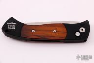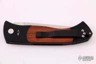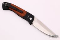 The Brend Auto #3 is the newest Pro-Tech model to feature Walter Brend's famous "Model 1" blade shape. The #3, or "Medium Brend", is larger than the #2 and smaller than the #1. Coil spring side-opening automatic. This Brend Auto #3 has a satin finish blade and black handle with cocobolo inlays. Third production run #214. Comes with original box and papers. Excellent condition.
