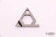 "Made of aircraft grade 6AL4V titanium, this unique multitool features a 1/4" hex opening with O-ring retention system, 7/8" hex opening, O2 wrench/lanyard hole and bottle opener." Tumble finished Titanium. Comes with card and bag, excellent condition.