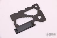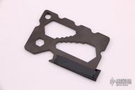 "Made of CPM S30V, this mini credit card tool features six SAE wrench sizes: 1/4, 5/16, 3/8, 7/16, 1/2, and 9/16. Also includes five Metric wrench sizes: 6, 8, 10, 12, and 14mm. Bottle opener doubles as a 5/16 wrench. A 1/4 hex driver opening and screwdriver tip is also included as well as a small cutting edge." Stonewash finish. Excellent condition. Comes with original bag and card.