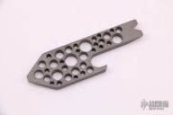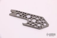 "Standard features include pry tip with wire stripper notch, bottle opener, and screwdriver tip. Special features on this version include extra thick titanium and a series of decorative holes which further reduce weight and add extra grip." Excellent condition.