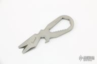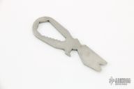 "Made of anodized titanium this compact multi wrench tool features seven SAE wrench sizes: 1/4, 5/16, 3/8, 7/16, 1/2, 9/16, and 5/8. Also features a bottle opener with additional 5/16 wrench opening and a heavy duty pry tip." Tumble finish. Excellent condition. Comes with bag and card.
