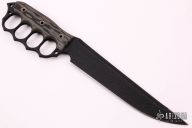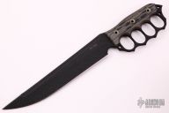 This Arrgone Assault by Busse features a black coated blade with a sharpened spine, .255" blade stock and 1.867" blade depth, full tang construction. The handle has black/green G-10 scales and a knuckle guard with extended skull crusher and lanyard holes. Excellent condition.
