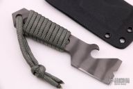 This Son of PryThing ghost finish has a chisel grind and cord wrapped handle. Has some minor sheath marks. Comes with sheath. Excellent condition.