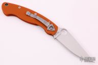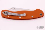 Spyderco Military C36GPBORE - CPM-REX45 Blade - Burnt Orange G-10 Handle The latest in the series, this breathtaking Sprint Run expression of the iconic Military™ Model proudly features CPM® REX® 45 blade steel and textured G-10 scales in the signature burnt orange color of Spyderco’s elite REX 45 family of knives. Crucible® CPM REX 45 is a super-high-speed particle metallurgy tool steel enriched with large volumes of cobalt, tungsten, molybdenum, and vanadium. Its high cobalt content increases the steel's attainable hardness, while its vanadium carbides provide high wear resistance, fine grain size, and increased toughness. In a knife blade, these qualities translate to an exceptionally sharp, long-wearing edge. REX 45 is, however, a true tool steel, so it must be maintained properly to avoid corrosion. REX 45's alloy composition is equivalent to Hatachi’s HAP40—a favorite among Spyderco steel enthusiasts. The handle scales of this remarkable expression of the Military Model therefore feature the same burnt orange handle color as our highly coveted Japanese-made HAP40 Sprint Runs. All other features of this knife are consistent with the time-tested Military design, including its LinerLock mechanism and right-side, tip-down carry clip. Specs: Category End Use: EDC/Collector Blade Steel: CPM-REX45 Blade Grind: FFG (full flat grind) Blade Length: 4.06" (103 mm) Length Open: 9.58" (243 mm) Length Closed: 5.52" (140 mm) Blade Thickness: .145" (3.7 mm) Hole Diameter: .5" (13 mm) Lock Type: LinerLock Handle Material: Burnt Orange G-10 Tip Carry: Tip-Down Clip Position: Right Hand Weight: 4.3 oz. (122 g) Made In: U.S.A. Comes with original box and papers. Excellent condition.