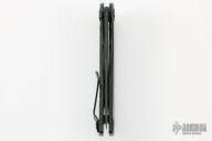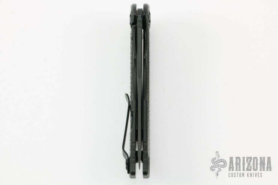 This 0609BLK Flipper is an RJ Martin design executed by Zero Tolerance. It features a black DLC coated clip point blade with swedge, notched thumb rest and flipper. The handle is comprised of a machined and DLC coated titanium frame overblack barrel spacers. The black coated stainless steel clip is reversible for right or left hand tip up carry. Excellent condition. Includes original box and paperwork.