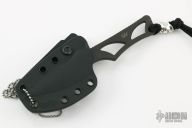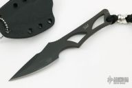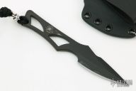 Enyo - a fitting name for this knife, Enyo, was an ancient goddess of war, acting as a counterpart and companion to the war god Ares. This companion knife can be worn around the neck or in a pocket / inside the waist band (IWB). The Enyo’s design makes it a comfortable everyday carry fixed blade with great ergonomics. Enyo is perfectly suited for daily cutting tasks, and is always ready to assist the user. The form fitted Kydex sheath. Pewter Spartan helmet bead on lanyard. This Enyo has a Flat Black coating (SpartaCoat – PVD – Tungsten DLC) and a black Kydex sheath. Excellent condition. S45VN. Comes with original box.