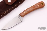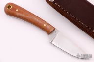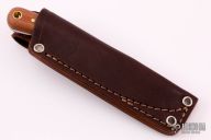 The Frontier Valley by LT Wright features a satin finished full flat ground blade with .119" blade stock and .946" blade depth, full tang construction with natural canvas micarta scales. Comes with brown leather sheath and original box. Excellent condition.
