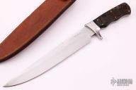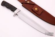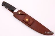 This Bowie by Andre Ronald features a satin finished blade with .192" blade stock and 1.588" blade depth, full tang construction. The handle has a stainless steel guard, sheep horn scales with brass pins. Comes with a brown leather sheath with belt loop. New from maker. Comes with COA dated July 25th, 2019.