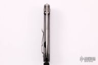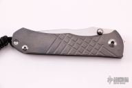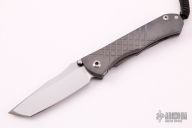 This Unumzaan from Chris Reeve Knives features a tanto style stonewashed blade with dual thumb studs and notched thumbrest. The handle is comprised of bead blasted and milled titanium with matching tip up clip. Lanyard pin with lanyard and spacer bead in pommel. Comes with original box and COA dated February 9, 2021. Excellent condition. S45VN Blade Steel.