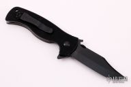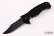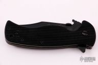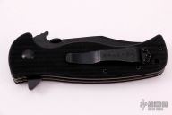 This Sheepdog from Emerson Knives features a black blade with notched thumbrest and flipper. Knife can be opened using the thumb disk, wave feature or flipper. The handle is comprised of black G10 scales over titanium liners with black barrel spacers and black stainless steel reversible pocket clip positioned for (right or left handed) tip up carry. Comes with original box and papers. Excellent condition. #1301