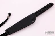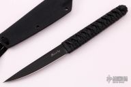This Kwaiken Fixed Blade by Lucas Burnley features a black blade with 0.129" blade stock and 0.670" blade depth. The handle is comprised of Japanese style paracord wrap over black grip tape and hidden tang construction. Includes kydex sheath. Has a couple light scratches, otherwise excellent condition.