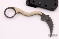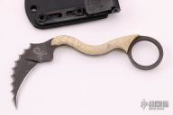 Named for its ability to bite deep with a nasty sting, the Texas Death Adder karambit packs some wicked power into a pocket-sized package. This sleek, contemporary karambit boasts a unique design profile with full back blade serrations and a razor sharp inside curve. The Juma handle scales keeps weight down while providing a sure grip in any environment, while the safety ring enhances weapon retention. The heat treated blade reduces light throw, allowing for use in tactical or low-light circumstances.