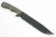This Rodent 9 by Swamp Rat Knives features a black coated clip point blade, .264" blade stock and 1.701" blade depth, full tang construction. The handle has black canvas micarta scales, and a lanyard hole. Excellent condition.