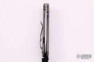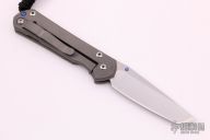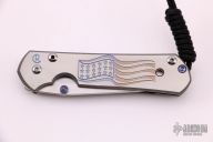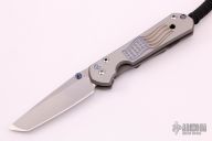 This Small Sebenza 21 by Chris Reeve features a tumbled tanto blade with single thumbstud, notched thumbrest. The frame is titanium with a computer generated graphic "TNK Flag Series", tip up clip. Nice detent, lockup and blade seating. Excellent condition. Comes with box, leather sheath and papers dated September 30, 2015.
