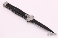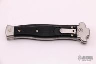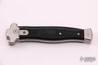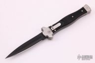 This Zero model features a black G-10 handle and a black dagger blade. The AGA Campolin Zero automatic offers Italian-made craftsmanship at it's very finest. This model is characterized by a flawless fit and finish, rock solid blade lock up, and snappy automatic deployment. The Zero is definitely not your grandpa's Italian stiletto, with carbon fiber handle scales, stainless steel bolsters, and a high performance N690Co steel blade. A stainless steel tip-down pocket clip finishes off the solid EDC design. Features: Black G-10 handle scales offer a sleek look and a high-performance grip. Stainless steel pocket clip for comfortable everyday carry. Austrian Bohler N690Co blade steel provides a strong, durable blade edge. Comes with original box and papers. Excellent condition.