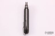 I also have a couple of new patterns available made with a patented "Rip Cord" mechanism. It is an out the front mechanical knife that has a metal strip that extracts the blade from the handle with a tug. The metal strip also called the 'key' can be reinserted into the knife to unlock the blade and let it retract back into the handle."