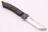 I specialize in linerlock folders. The frames are made from 6AL4V titanium. For overlay handle material I have used just about everything from exotic woods, pearl, ivory, G-10 and Micarta. The blades, which I feel is the most important part of the knife, I try and use the best steel available. For my stainless steel blades I use ATS-34, BG42 and I am starting to use S30V, professionally heat treated to 59-60Rc. I use some carbon steel damascus by George Werth however for everyday carry knives I use more stainless damascus. My preference is Damasteel which is produced in Sweden and sold by Michael Walker. I've also used steel by Devin Thomas and Mike Norris. Most of my knives are made in 3" and 4" blade lengths in both right and left hand models.