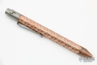 This pen by Nottingham Tactical features a copper construction with a custom milling pattern. The pocket clip and clicker are titanium. This pen features a double Lock and takes a Parker cartridge. New from maker.