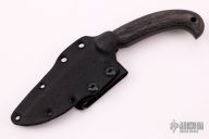 Intended for everyday carry, Contingency’s curved handle and simple sheath conceal well when the need arises. The knife is designed with natural point and edge awareness. In a standard grip, the blade is in line with the thumb. In a reverse grip, the blade is perpendicular to the user’s body. Knife Specifications Blade steel: 80CrV2 Black oxide no-glare finish Blade length: 3.5" Overall length: 7.625" Blade thickness: .165" Skeletonized, full tapered tang Thumb index file work Sheath Lined Kydex® Spring steel, belt clip. Only comes with the sheath. Excellent condition.