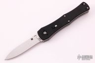 This JaniSong by Spyderco Knives is a Michael Janich design and is rare in the USA since Spyderco chose to only sell this knife outside the USA. Features a satin finished blade. The handle has black G-10 scales with locking switch, stainless steel liner and barrel spacers. Has a black stainless steel 4-Way Reversible clip. Includes original box and papers. Excellent condition.