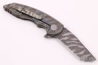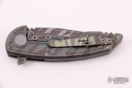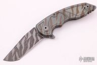 From Hoback Knives: The A8 is the down-home, hard-work inspired folder. We built this knife to be at home in your pocket, so it’s always where you need it and you don't have to think about it. It just plain works. We took the A10 folder and scaled it down to be much more pocket-friendly, while still being large and in charge! The A8 still sports a 3.25” long blade like its A10 big brother, but it’s much narrower and slides into the pocket with ease. And anytime you see the word “Slimline,” you know the knife will be lighter, faster, and thinner for even more ease of carrying. It will boast the same strength and precision engineering you have come to expect from Jake Hoback Knives. SPECIFICATIONS: Blade: CPM-20CV, 3.25 Length, .1875 Thickness, stonewash finish Frame: Grade 38 Titanium, .1875 Thickness, Stonewash blade finish. Closed Length: 4.66" Open Length: 7.796" Weight: 4.7oz. Other Features: Pivot Thrust Bearings HRD (Hoback Roller Detent) Engineered Internal Lightening Pockets (less weight, same strength) Standard Sizes on all Screws for Ease of Replacement Hardened Steel Bearing Races. Comes in the original wooden box with certificate of authenticity. Excellent condition.