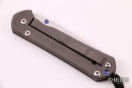 This Large Sebenza 21 Insingo by Chris Reeve Knives features bead blasted titanium frame and pocket clip, Tumble finish blade with single anodized titanium thumb stud. Nice function, strong lock up, nice detent and blade seating is centered. Has a few light scuffs, otherwise excellent condition. Comes with original box and COA dated January 25, 2017.