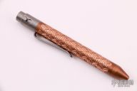 This pen by Nottingham Tactical features a copper construction with a custom milling pattern. The pocket clip and clicker are titanium. This pen features a double Lock and takes a G2 cartridge. New from maker.