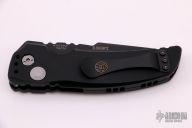 This EX-A01 by Hogue Knives is an Allen Elishewitz design, it features a black Tanto partially serrated 154CM blade with notched thumbrest. The handle is black aluminum, tip up or down reversible black stainless steel clip. Has safety. Comes with Hogue box, papers and nylon sheath. New condition.
