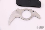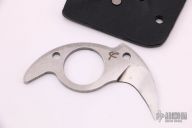 This Toucan Neck Knife from Fred Perrin features a chisel ground satin finish hawkbill style blade. The handle is comprised of satin finish steel with integral construction and a 1" finger hole. Includes kydex neck sheath. New from maker.