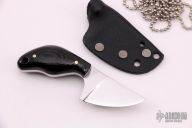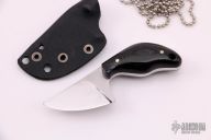 This Pocket Claw by Fred Perrin features a mirror polished blade with .111" blade stock and .852" blade depth, full tang construction. The handle is comprised of black linen micarta with nickel silver pins. Lanyard hole with lanyard in pommel. Includes kydex sheath. New from maker.
