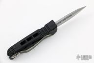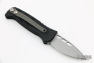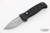 This CS (California Special) Militia side-opening automatic by Rob Dalton has a satin finish blade and milled black anodized aluminum frame. Bead blast titanium clip. Strong and fast coil-spring opening. Excellent condition.