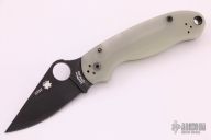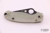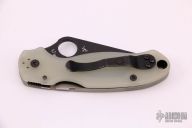 This C223GPOR Para 3 by Spyderco features a black finished clip point blade with thumb hole and notched thumbrest. The handle is comprised of an jade G-10 frame over nested steel liner and stand-offs. The steel pocket clip is 4 way adjustable. Includes original box and paperwork. Has a couple light scuffs, otherwise excellent condition.