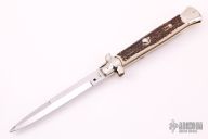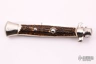 Angelo Campolin Sr. was born in 1923 in Maniago, Italy. He worked on perfecting his knife making skills before WWII and at this time made his first switchblades. After the war, in 1947 he started his company and made 30 stilettos with the marking “Angelo Campolin”. In the 1970’s Angelo’s son Gianni started to work in the company and they were specializing in folding hunting knives and also manual folding stilettos for the Robert Klaas company in Solingen Germany with their Kissing Cranes mark. In 2002 American switchblade collectors Dan Fuller, Brad West, and Tim Zinser were visiting Maniago and enjoying a few glasses of wine in a bar with Angelo Jr. and Gianni. The discussion was about a new name for some knife projects they wanted to pursue. It was Brad West that suggested the tang stamp should be AGA, for Angelo, Gianni, Angelo, thus representing three generations in the knife making business. The Campolins liked it and it stuck. In the beginning it was just a few items, but grew to the point where now there are 12 models and different scale options. The goal has been to offer quality switchblades using the old methods and traditions. Being a collector himself, Angelo Jr. knows what others like. The company headquarters has moved to Austria with production still in the original Maniago shop, as well as the others in Maniago that produce the knives for A.G.A. Campolin.