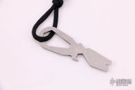 "Made of Crucible's CPM S30V premium cutlery steel, this compact multi wrench tool features seven SAE wrench sizes: 1/4, 5/16, 3/8, 7/16, 1/2, 9/16, and 5/8. Also features a bottle opener with additional 5/16 wrench opening and a heavy duty pry tip." Tumble finish. Includes makers card. Excellent condition.