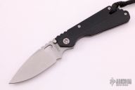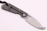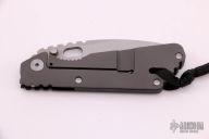 This PT CC by Strider Knives features a tumble finished drop point blade with thumbhole, dual thumb studs and notched thumb rest. The handle has a black G10 and a tumbled titanium frame. Lanyard hole in pommel. Excellent Condition.