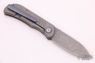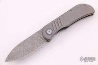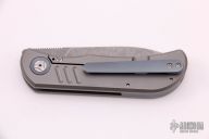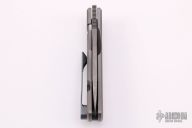 This EXK CFL from Burger Knives features an acid wash tumble finished sheepsfoot blade with notched thumbrest and front flipper. The handle is comprised of a bead blasted and milled titanium frame with anodized tip up clip and backspacer. Includes a zippered case. Excellent Condition.