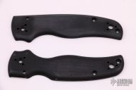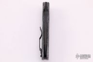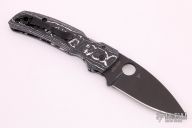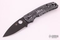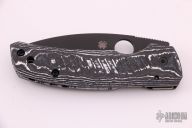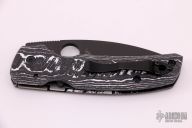 This Shaman PLN by Spyderco features black spear point blade with notched thumb and finger rests, thumbhole. The handle has fat carbon scales, inlaid stainless steel liners and a satin finished stainless steel backspacer, lanyard hole at the butt. Has some light scuffs and scratches, otherwise excellent condition. Comes in a Spyderco box, but is not the box for this particular knife.
