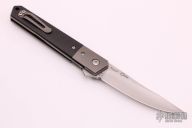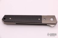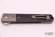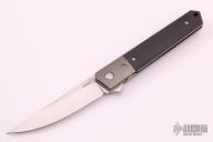 This Burnley Designed Kwaiken flipper (#0928) has an VG-10 steel up-swept satin finished blade with swedge and IKBS bearings. Has bead blast finish titanium bolsters, carbon fiber scales, titanium liners and backspacer. Comes with a black/white BRNLY patch. Has a couple scuffs, otherwise excellent condition.