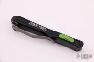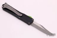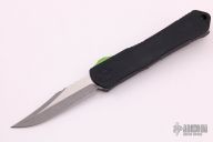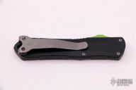 This Manticore-S by Heretic Knives features a two-tone bowie style blade . The handle has a blue aluminum frame with a stainless steel tip down clip, green G-10 thumb slide. Comes with original box and papers. Excellent condition.