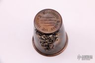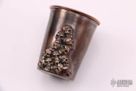 This shot glass by Bastinelli Creations features Bronzed skulls on one side. New From Maker.