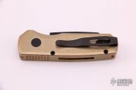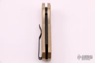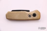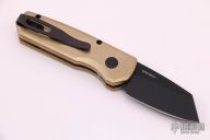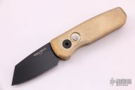 This Runt by Pro-Tech features a black blade.  The handle features a stonewashed bronze aluminum frame with milled thumbrest, a stainless steel tip up pocket clip and a mother-of-pearl push button.  Comes with original box and papers. New from maker.