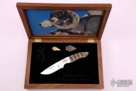This is a limited edition Browning "Full Curl Series" knife. The knife features, dovetailed stainless steel engraved bolsters, sheep horn scales. Has a mirror polished blade with full tapered tang construction. The knife comes in a solid wood presentation box. The knife is in new, unused, excellent condition. Comes with original box and artwork.