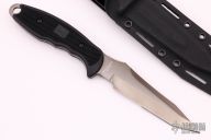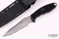 This Recondo from SOG Knives features a TINI finished tanto blade with a partially serrated edge and notched thumbrest, .166" blade stock and 1.166" blade depth, full tang construction. The handle has black composite scales and a lanyard hole at the butt. Comes with kydex sheath and original box and papers. Excellent condition.
