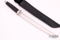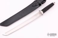 This Magnum Tanto XII by Cold Steel with San Mai VG1 blade in satin finish. Guard and pommel are stainless. .188 blade stock and 1.169" blade depth, hidden tang construction. Handle is textured Kraton for a sure non-slip grip. Lanyard hole and glass breaker. Comes with black leather sheath and original box. Excellent condition.