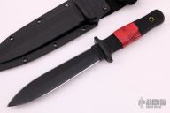 This Peacekeeper 1 from Cold Steel features a double edged black blade with .206" blade stock and 1.325" blade depth. The handle a Kraton grip over hidden tang construction. Lanyard hole in pommel. Comes with a kydex sheath and original box New condition.
